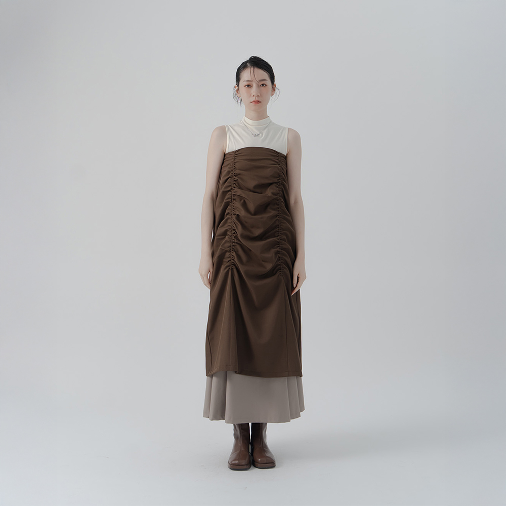 多穿抓皺剪裁吊帶長裙-咖啡 S/M