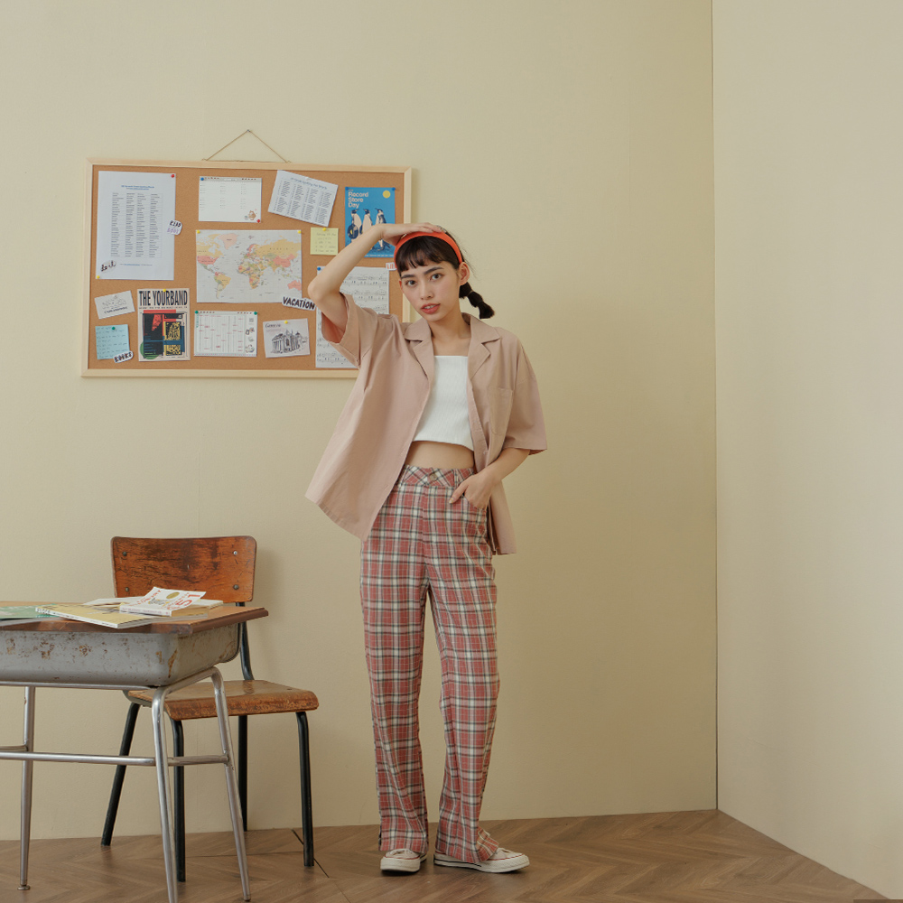 復古格紋高腰喇叭褲 兩色售 S/M/L
