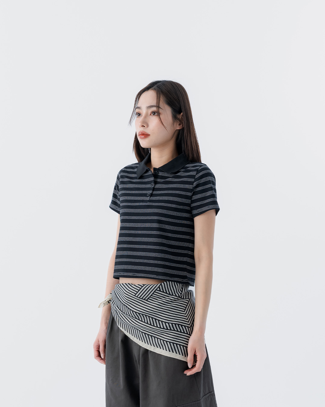 條紋設計短版襯杉 兩色售